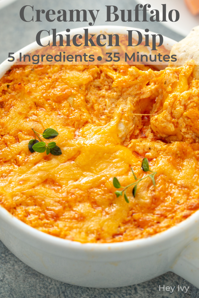 This buffalo chicken dip has an addicting flavor that can’t be beat. It is done in 35 minutes and requires very little effort. Bring it to your next football party and let me know what you think! If you’re looking for more appetizer inspiration, check out some of my other go-to favorites like Beer Bacon Cheddar Dip or Hot Honey Pepperoni Puffs– Hey Ivy 🌿